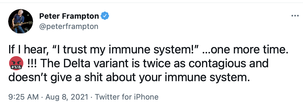 And here's a couple of Twitter tweets. Yes, it's that Peter Frampton.