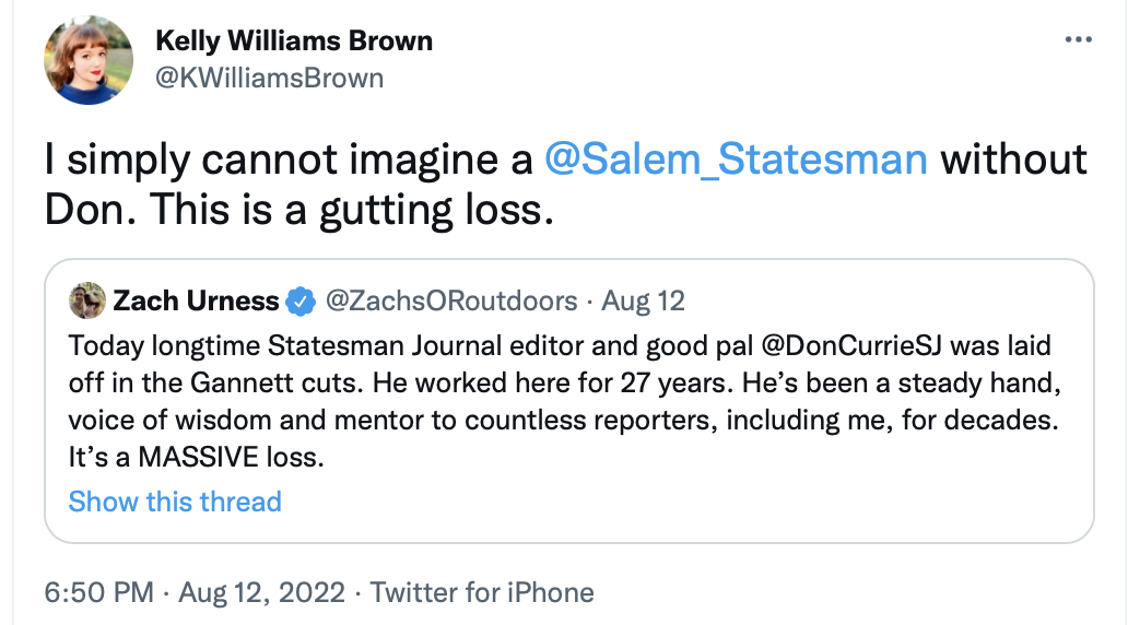 As the Statesman Journal sinks further into a journalistic abyss of mediocrity, sadly its cruel corporate overlords are dragging down highly competent staff in another round of firings.