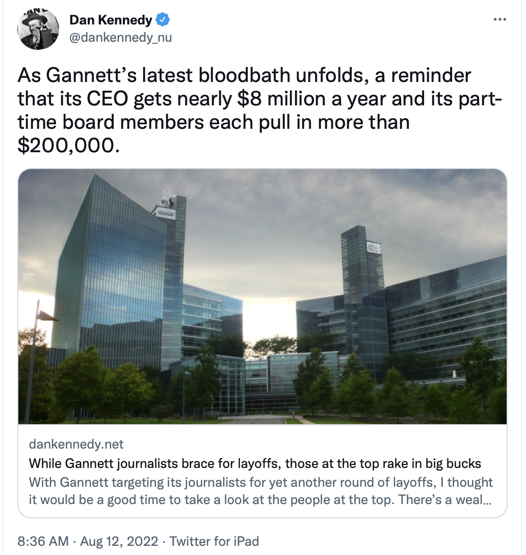 Saving enough money in newsrooms to pay for the outrageous salary of the Gannett CEO and board members does seem to be the goal.