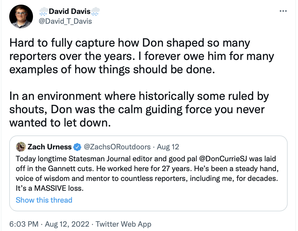 Don Currie's firing elicited some especially strong feelings since he had worked at the Statesman Journal for 27 years.