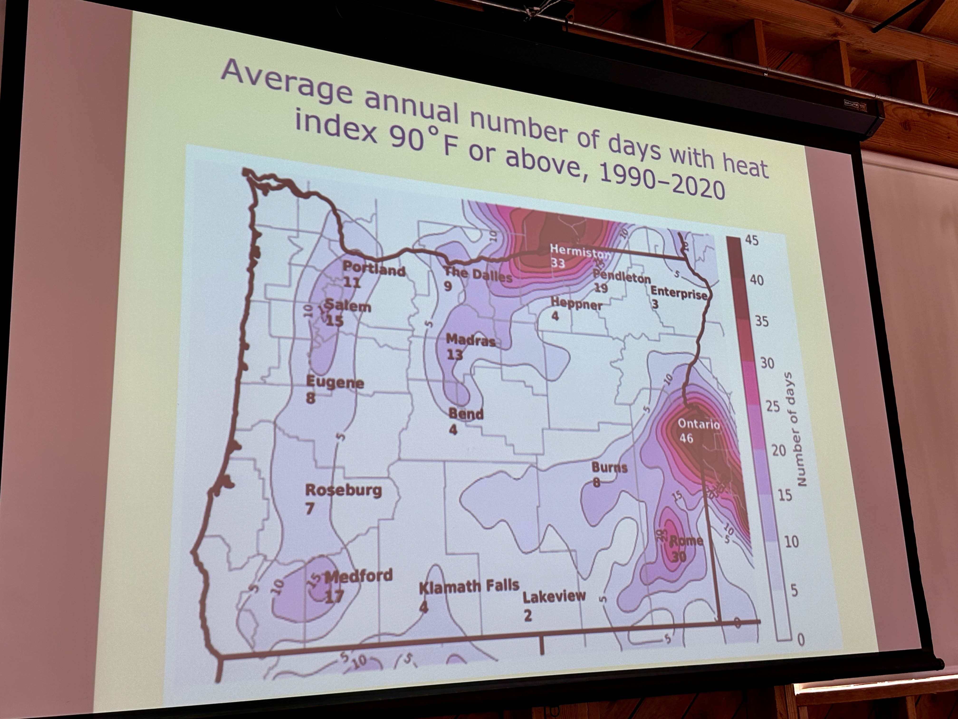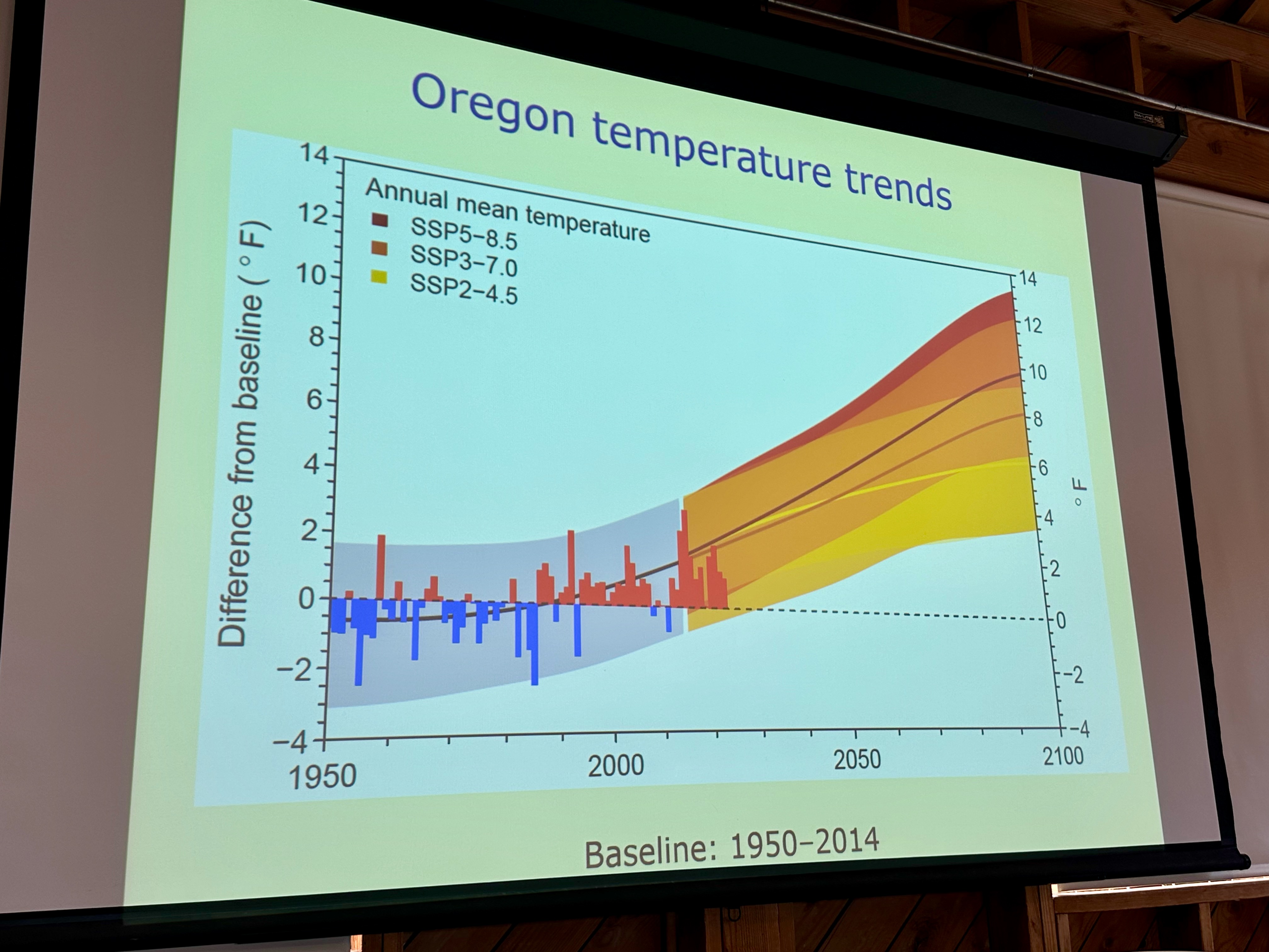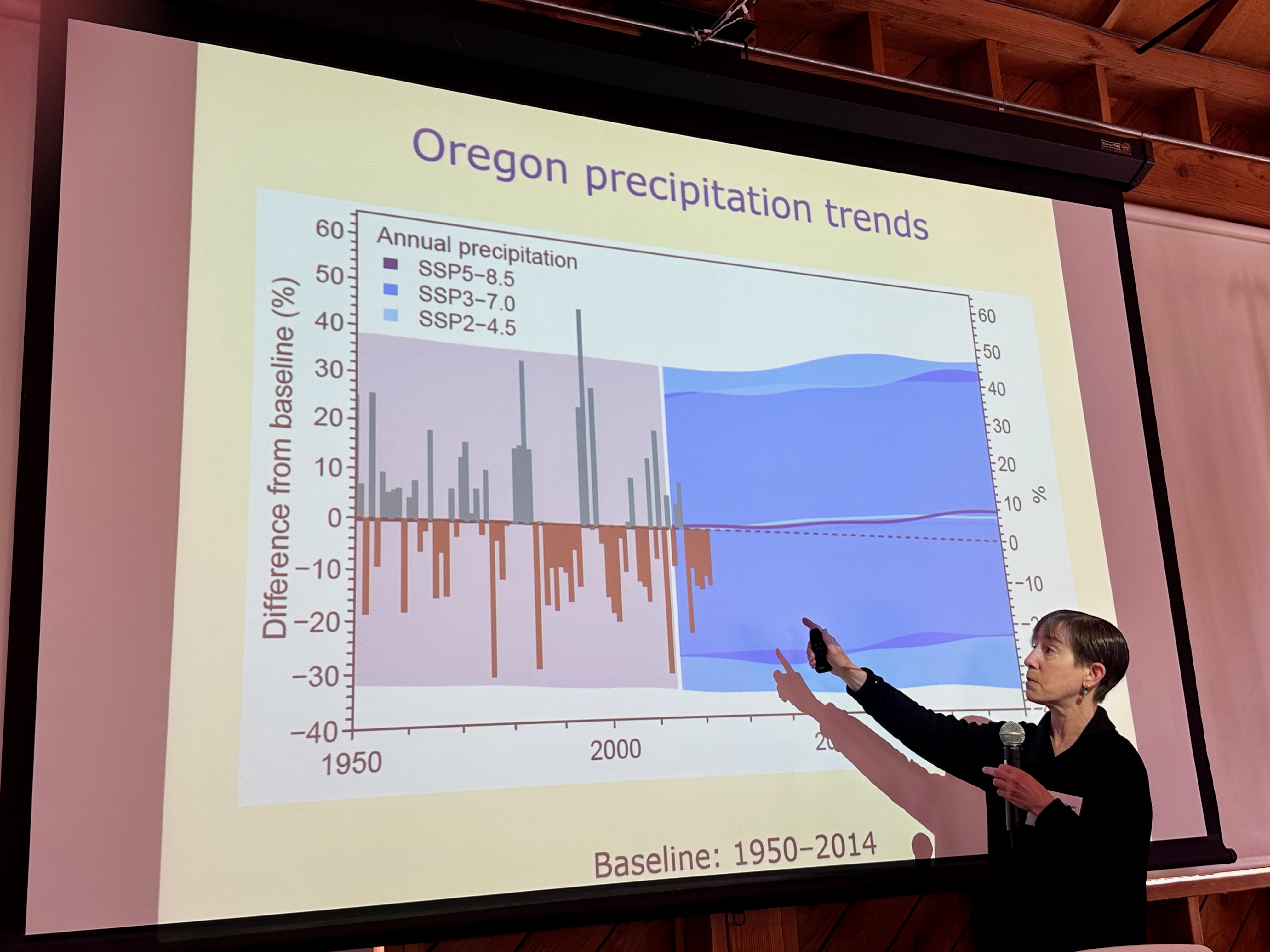 Fleishmann showed some slides that echo the most recent Oregon Climate Assessment.