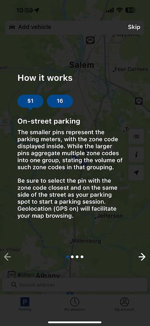 Hopefully actually paying for parking will go more smoothly than the botched rollout of the parking signs did. I've downloaded the iPhone version of the Beep Beep Salem app, which is our local version of the Flowbird app that's used in many locations in the United States and internationally.