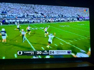 This evening the sixth-ranked University of Oregon defeated third-ranked Penn State 30-24 in two overtimes. Oregon football coach Dan Lanning said ““I think that’s the best game I’ve ever been a part of. Regardless of who won.” No argument there. It was one of the best games I’ve ever seen, for sure.